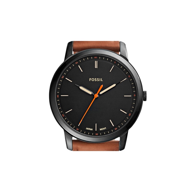 - Caja de acero inoxidable negra con carátula negra satinada; correa de piel color café con cierre de hebilla ajustable; intercambiable con todas las correas de reloj Fossil de 22 mm
