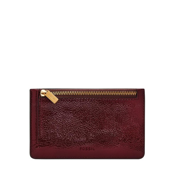 Fossil Ladies Logan Leather Card Holder Wallet, red, Casual