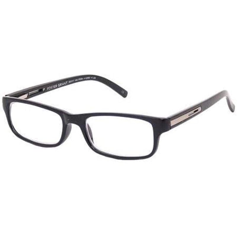 Foster Grant Classic Men's Black Rectangular Reading Glasses with Soft Case Brandon +2.50