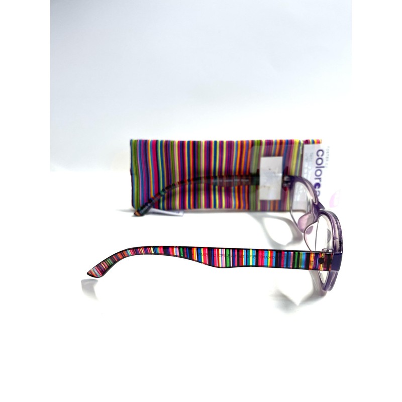 Foster Grant Coloread Leanna purple stripe temples rectangular Reading Glasses +3.25