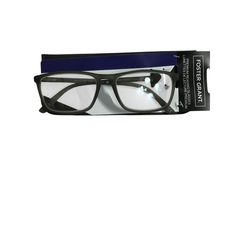 Foster Grant Premium Reading Glasses, Corey gray Rectangle Frame, Clear Lenses +2.50
