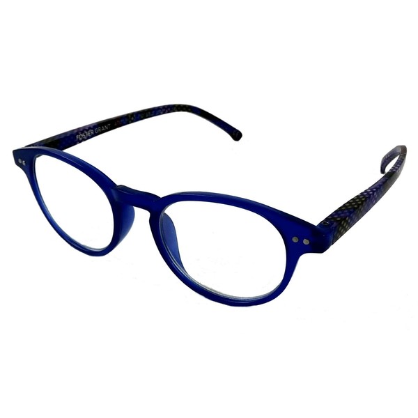 Foster Grant Seren BLU Round Reading Glasses, Blue with Rainbow Temples, +3.00