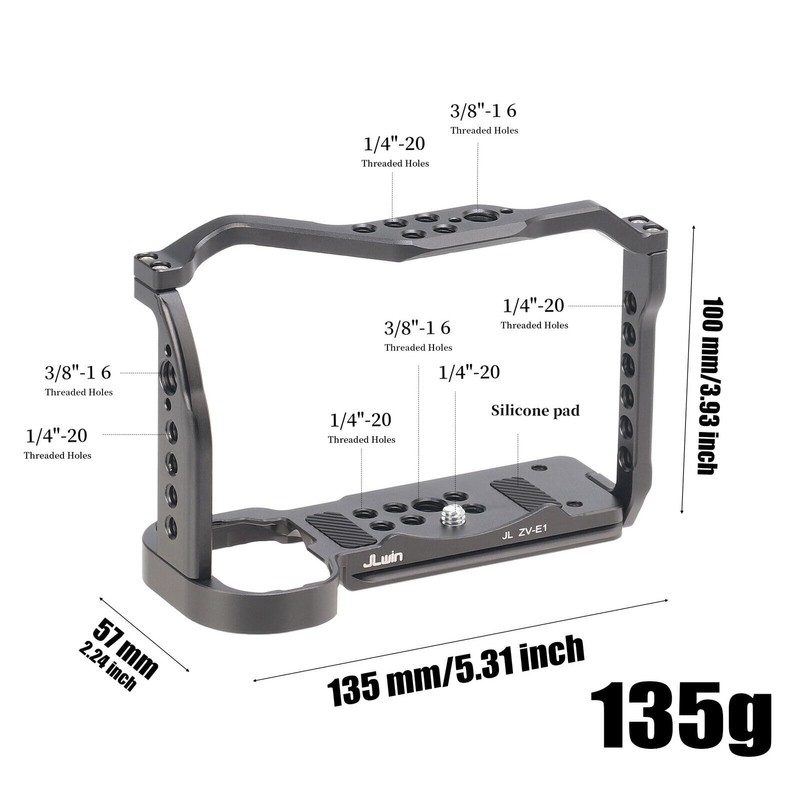 - Multiple attachment points: the ZV-E1 cage has several 1/4"-20 holes for attaching the magic arm, 3/8"-16 mounting holes on the top and one side for ARRI type, NATO rail on the top, which supports different types of top handles or side handles, such as for ARRI type top handle, Nato top handle and 1/4"-20 thread. .