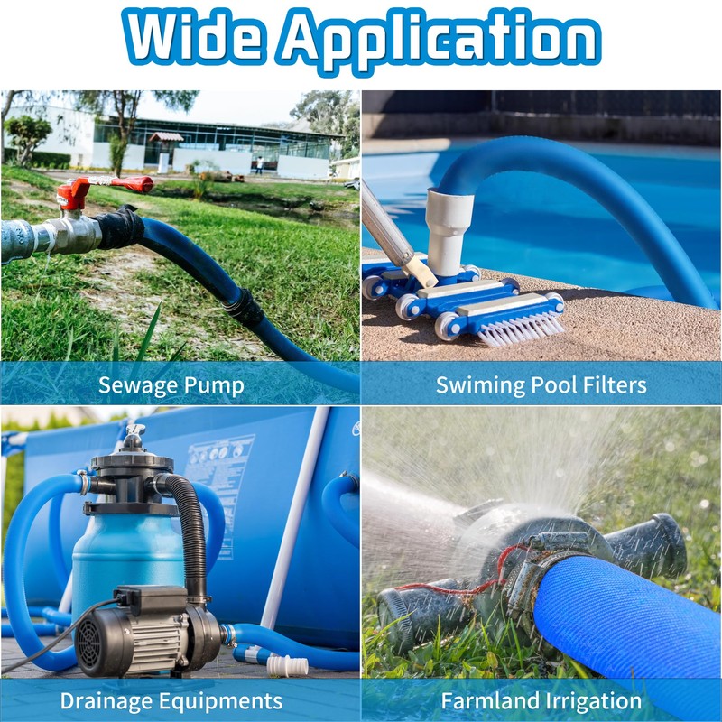 - 【VERSATILE APPLICATIONS】Its lay-flat design ensures portability and ease of use, making it an excellent choice for discharging submersible sump pumps or high-pressure backwash for water transfer. Widely applicable in household draining systems and both in-ground and above-ground pool equipment