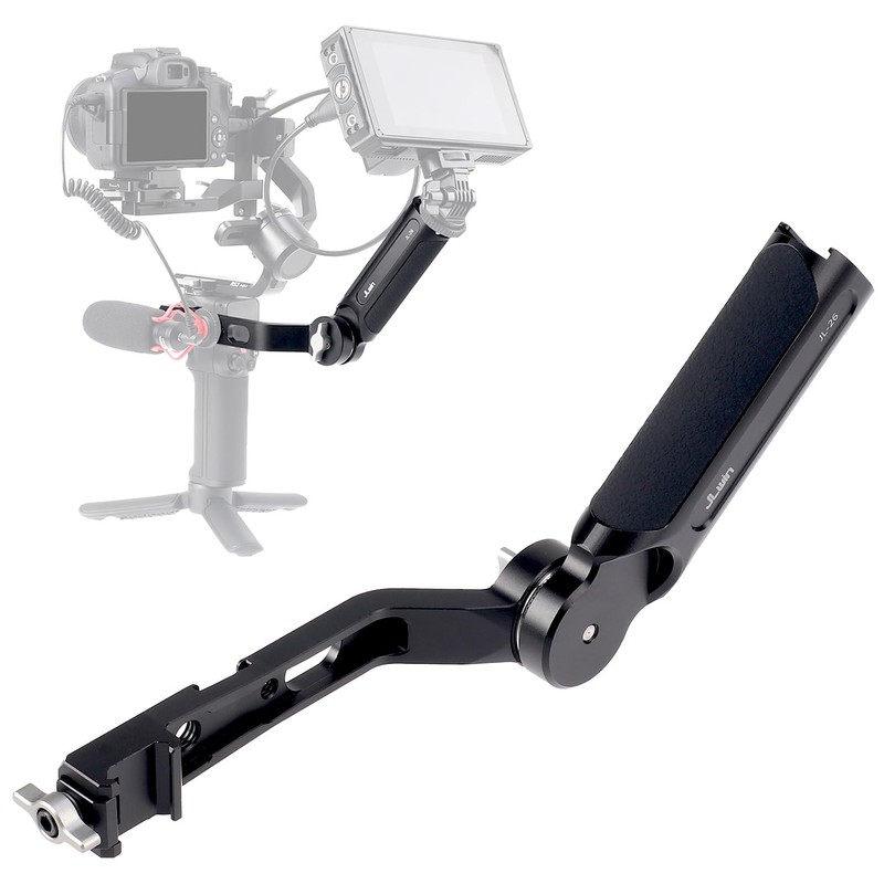 - The handgrip comes with multiple 1/4"-20 and 3/8"-16 screw holes and cold shoe mount for mounting accessories and monitor.The arm also has a cold shoe type of slot that allows you to attach a Rode Go wireless transponder.
