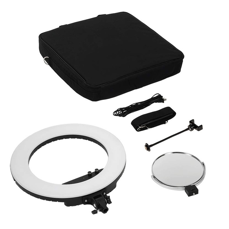 Fotodiox Selfie Starlite Vlog Pro Light - Black 18in Bi-Color Dimmable LED Ring Light for Portrait, Photography, Makeup, YouTube, Live Streaming Video; Includes Light, Phone Clamp and Vanity Mirror