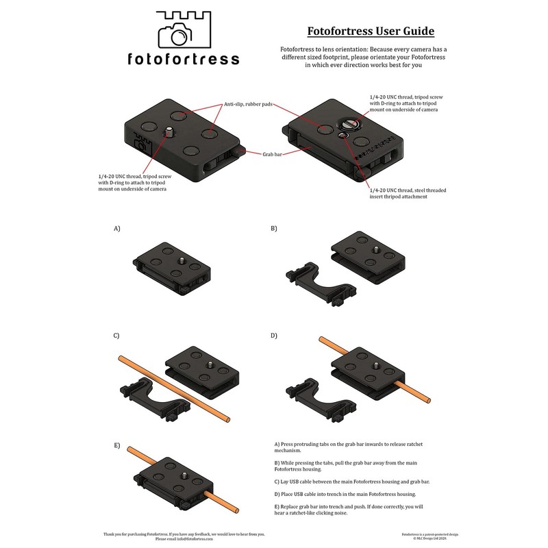 - Quick release at the camera side. No more having to unscrew from the camera to release your tether cable.