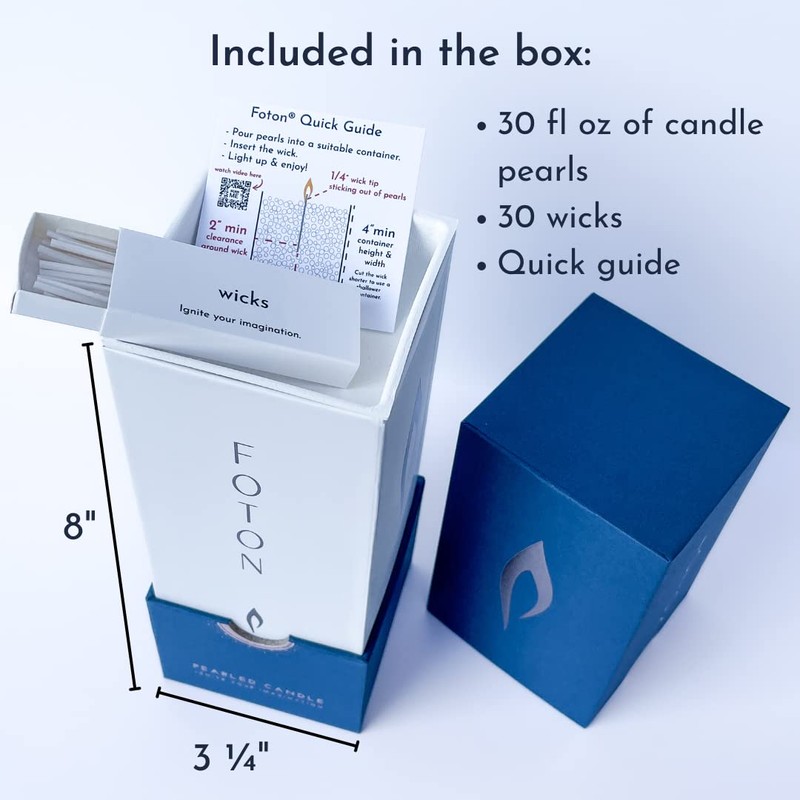 - Endless Design Possibilities - Pour Foton pearls into any suitable container to turn it into a candle. Get crafty with our generous stash of 30 premium candle wicks for candle making, ensuring your foton pearled candle's style always matches the season and your mood.