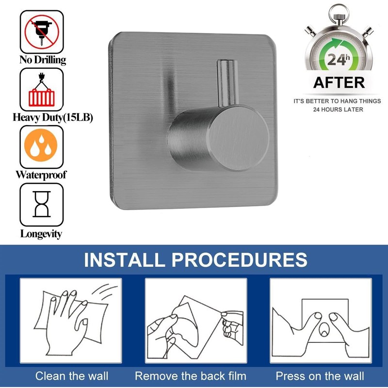 - 【WATERPROOF AND RUSTPROOF】 This hooks are made of 304 Brushed Stainless Steel.Ensuring quality and longevity,as well as rust and corrosion resistant for long-term use.
