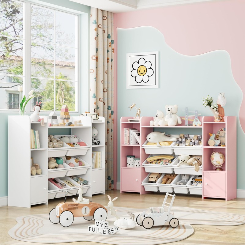 - 【Elegant Modern Design】The classic pure color scheme and functional storage aim to create a powerful storage solution that matches most home decor. The toy organizers and storage bins are also suitable for living room storage. 3 in 1 storage space (bookcase, toy bins and cupboard) is designed for all the needs of your little one.