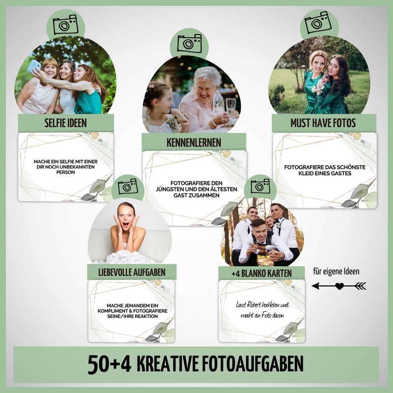 Fotospiel Wedding - The Original from snaPmee - 50+4 Photo Tasks - Wedding Game for Guests and Bride and Groom (Eucalyptus)
