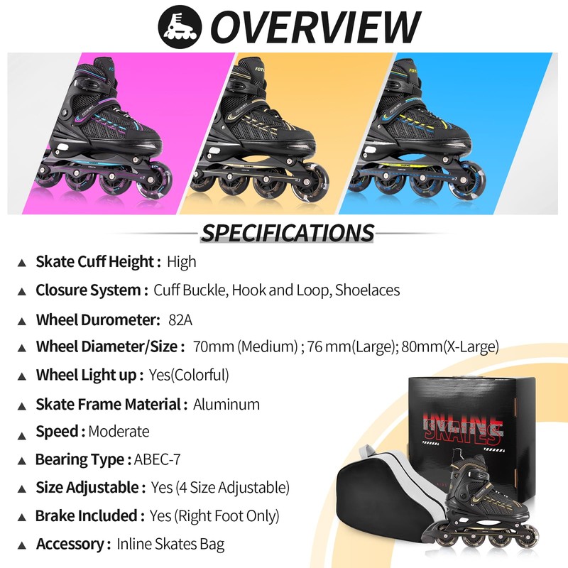 Fotoumgl Adjustable Inline Skates for Kids and Youth with Light up Wheels, Outdoor Beginner Skates for Girls Boys Ages 4-12, Women, Men