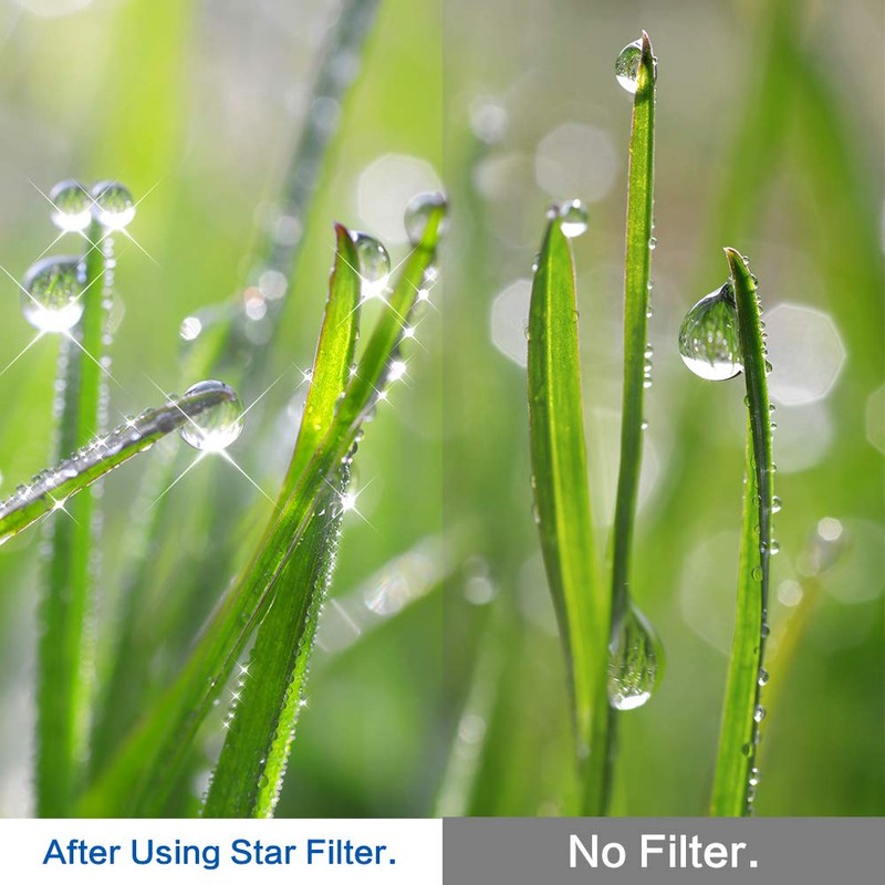- [Function]:The star filter can make any bright spot in the photo producing star-shaped flashy dazzling effect. The brighter the spot, the pronounced star effect. Perfect for night landscape, gemstones, glassworks, metalwork photography.