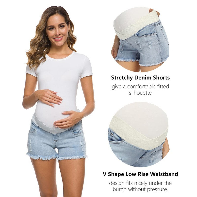 - SUMMER ESSENTIALS - This women's maternity jean shorts is your must-have in summer. The low-rise design with traditional 5 pockets for a casual feel. The ripped design makes this jean shorts full of characteristic and highlights your uniqueness.