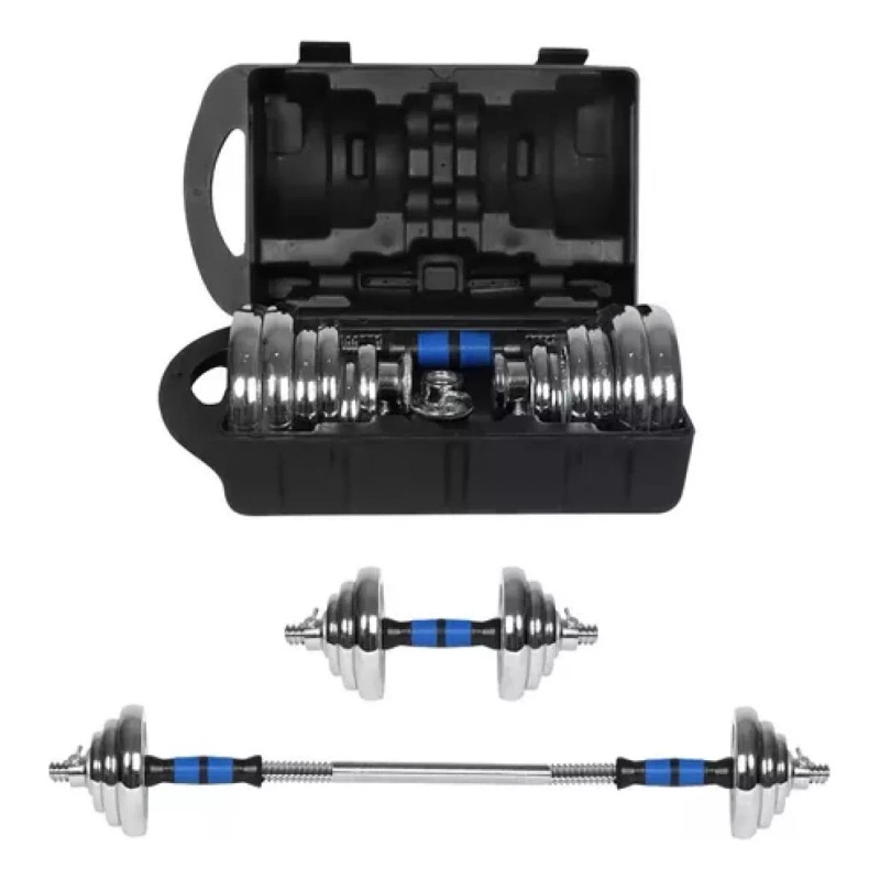 Esto permite ajustar la carga de peso en incrementos de 0.5 kg. Para facilitar su almacenamiento y transporte, el kit incluye un estuche donde se pueden guardar todas las piezas. Las barras y discos están fabricados con materiales resistentes y duraderos para asegurar su calidad y durabilidad.