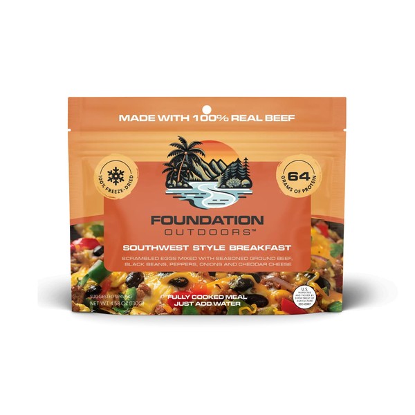 FOUNDATION Outdoors Southwest Style Breakfast, Freeze Dried Backpacking & Camping Food, Emergency Food, High Protein Meal