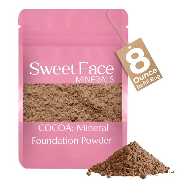 Foundation Powder Refill (Cocoa)(8 Ounce Bag) By Sweet Face Minerals, Lightweight Mineral Loose Makeup Powder with SPF 20, Full Coverage Flawless Finish, Talc-free, Cruelty-Free, Refillable Pouch