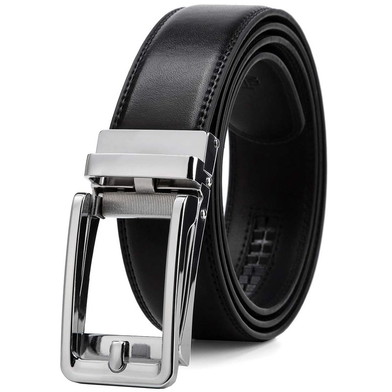 Founders & C Men's Leather Ratchet Comfort Click Belt Dress with Slide Buckle -Adjustable Trim to Fit (28"-42" Waist Adjustable, Silver buckle W 106 Black Leather)