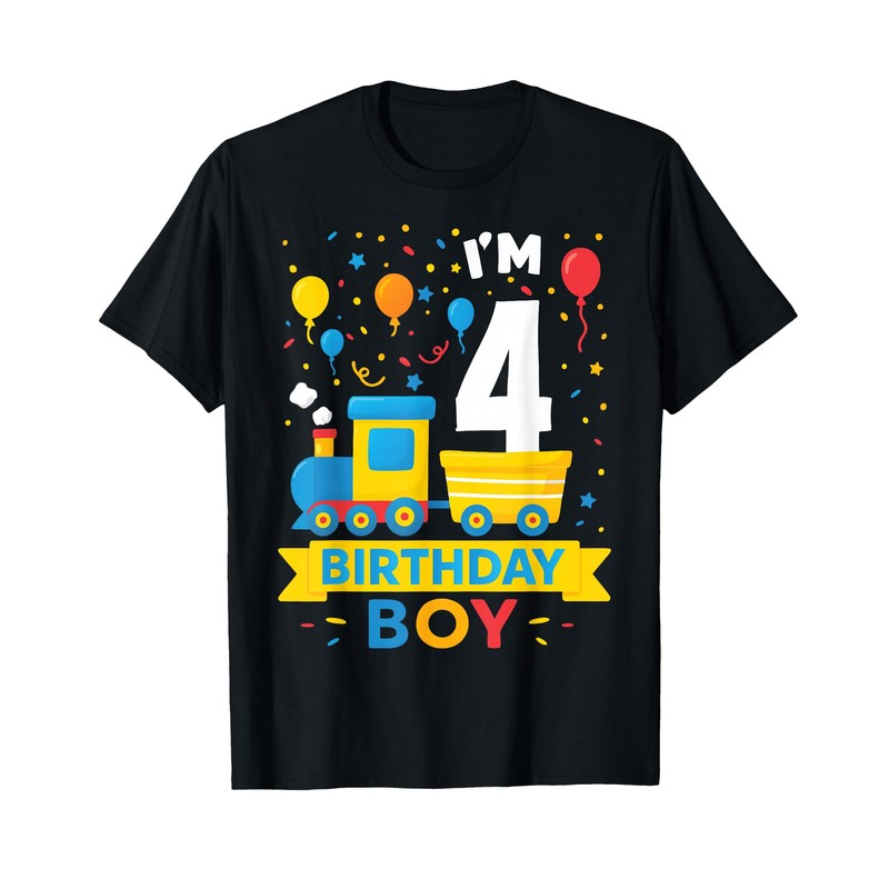 Four 4yr 4th Kids Boys Girls Train Birthday Boy 4 Years Old T-Shirt