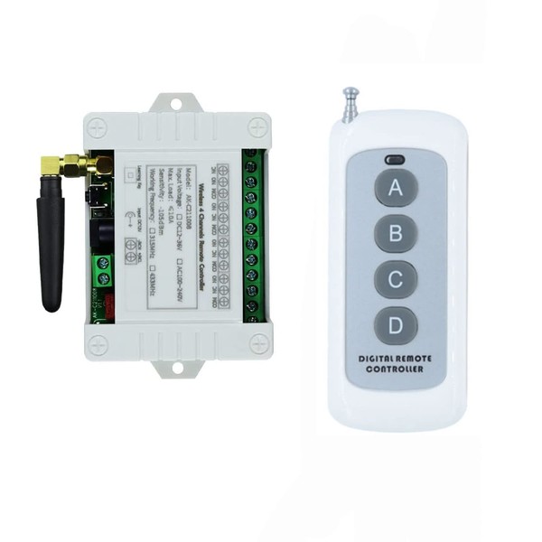 - wide voltage input: DC 12V-36V, channel:4 channels, coding method: Learning code, remote distance:300m (in the free field) wireless control, easy to install. The range is about 500-1000m in the open air, it can simply pass through walls and so on. But please note: trees, walls or other obstacles will shorten the range.The product has 6 working modes.