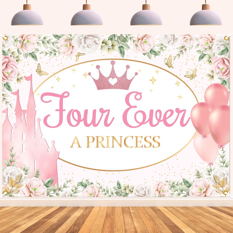- โจ๐๐๐๐๐๐๐๐๐ ๐๐๐๐๐๐๐๐๐๐โจ The Four Ever a Princess backdrop is suitable for Princess Theme 4th Birthday Party.The Backdrop has bright and vivid colors,novel style and print clearly, which is the latest design of our store in 2025.