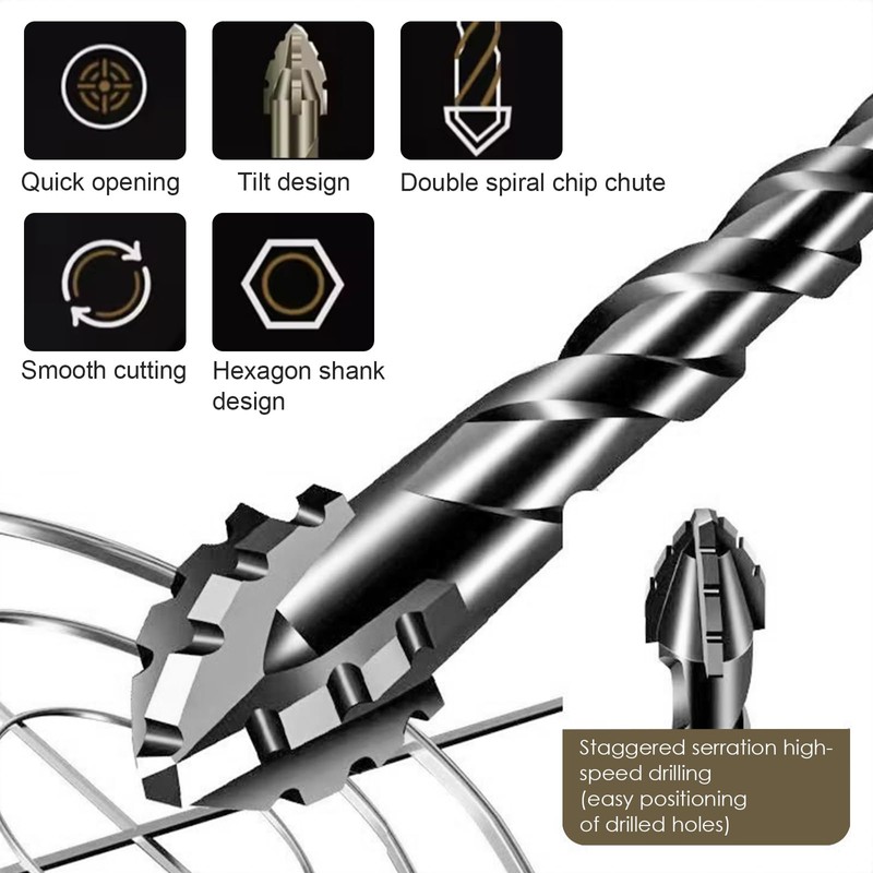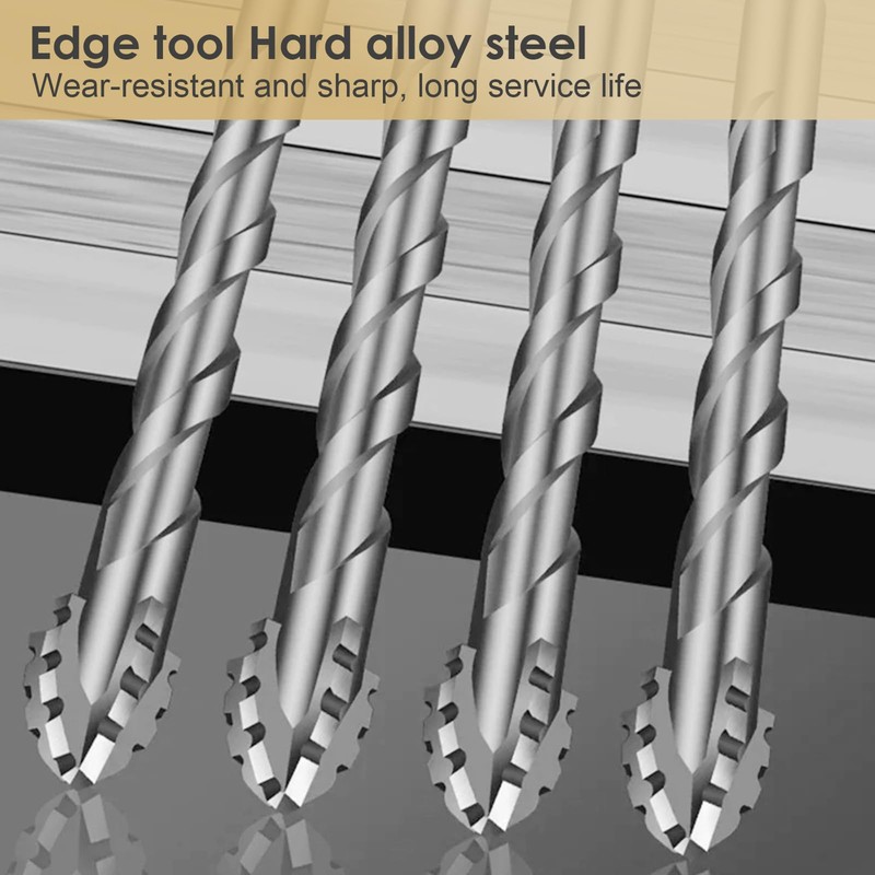 Four-Flute Sawtooth Eccentric Drill Bit Set, Tungsten Steel Carbide Serrated Bits, High-Strength Dry Drill Bits with 4-Edged Design, for Wood, Marble, Metal, Concrete & Tiles
