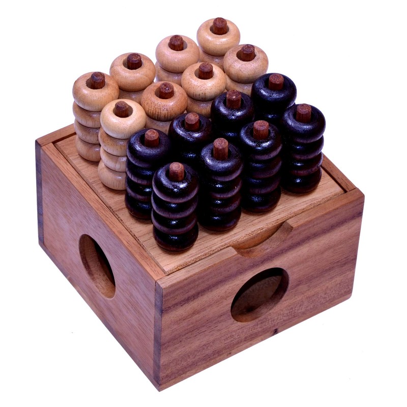 Four in a Row 3D 4X4 3d Bingo 4 x 4 – Mill – Four Row 3D – Strategy Game – Wooden Brainteaser Game