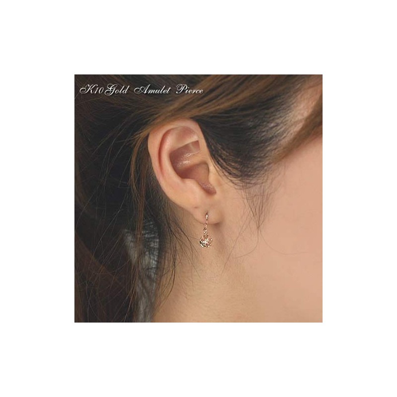 Four Leaf Clover Amulet Earrings, 10K Gold, Pink Gold, K10, February, May, July, September, October, November, Birthstone, Women's, Mother's Day: Sa250