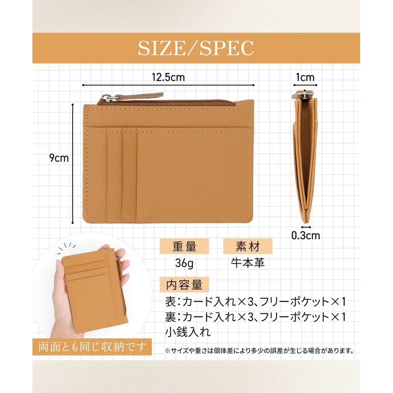 - [Material] Genuine Leather [Color] Yellow, Brown, Moss Green, Dark Green, Navy, Blue, Purple, Dark Brown, Sky Blue, Orange, Pink, Red, Black] 3.5 x 4.9 x 0.1 - 0.4 inches (9 x 12.5 x 0.3 - 1 cm); [Weight] 1.3 oz (36 g)