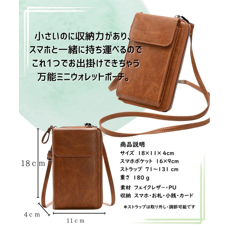 - Colors: Red, blue, black, brown, white, pink, yellow. This smartphone holder is a wallet type that can be worn over the shoulder and is compatible with smartphones such as iPhones. The leather material is luxurious, and it can be used to store cards and mobile phones together. Great for any everyday occasion. Please be aware in advance that details may change without prior notice