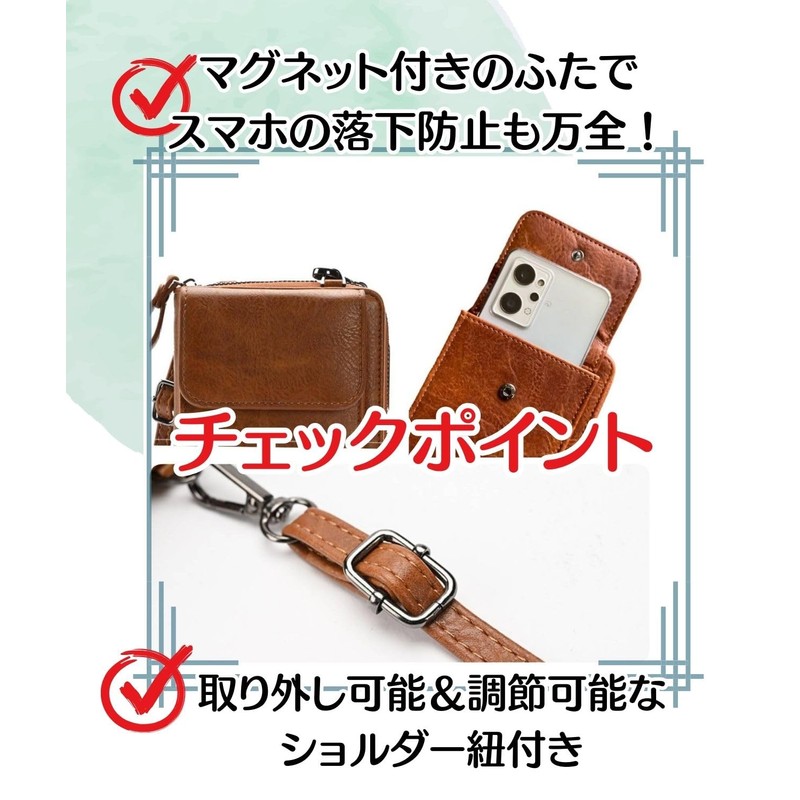 - Despite its small size, it has a storage capacity and allows you to quickly remove your smartphone for cashless payments. The button type smartphone storage reduces the risk of dropping your precious smartphone. This is a versatile mini wallet pouch that can be used to carry coins, keys, IC cards, etc. with your smartphone, so you can go out with this single item