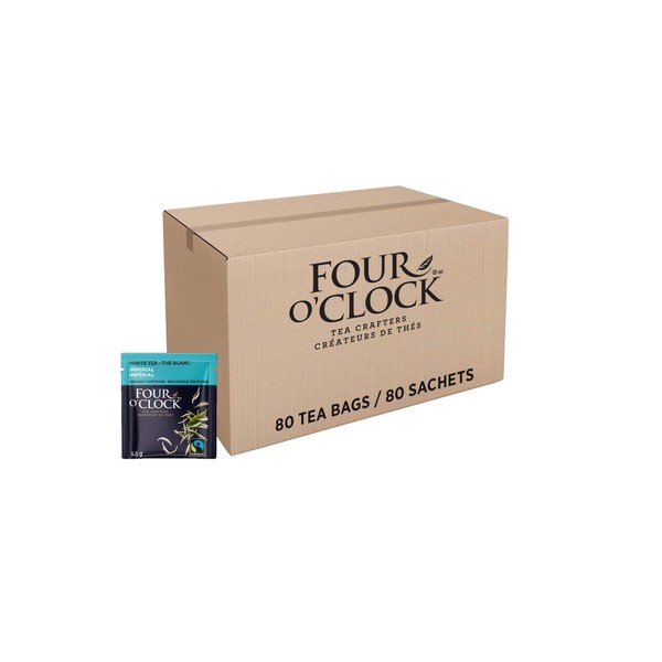 Four O'Clock White Tea Imperial Organic Fairtrade, Non-Gmo, Kosher, Gluten-Free, 80 Teabags