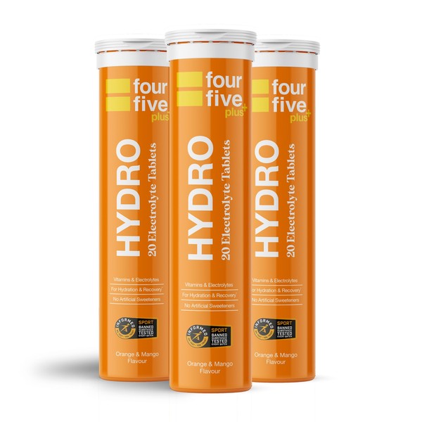 fourfive Hydration Tablets (Orange & Mango) Low Calorie Vitamin Electrolytes, Vegan, Magnesium & Calcium, Sports Hydration - 3x20 Effervescent Tablets