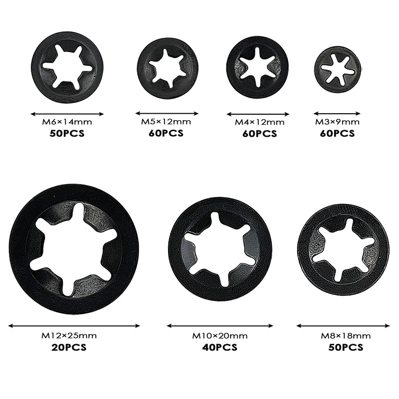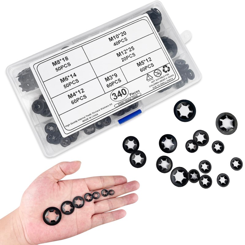 Fousenuk Pack of 340 Circlips Washers Starlock Clamping Washers Assortment Clamping Ring Inner Teeth Quick Release Retaining Ring Snap Assortment M3 M4 M5 M6 M8 M10 M12