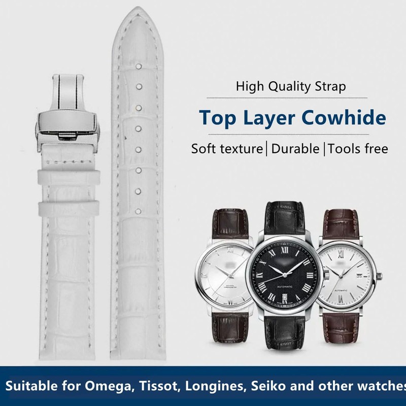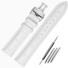 FOUUA Watch Straps Genuine Leather Alligator Embossed Replacement Folding Clasp Bracelets 12 13 14 15 16 17 18 19 20 21 22 24 mm, White, Strap.