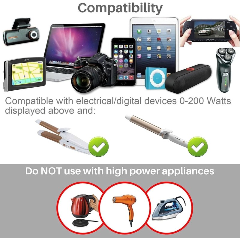 - Safe to Use: Certified by CE, FCC and RoHS industry standard. Do Not Use with Hair Dryers and Household Appliance over 230 watt!