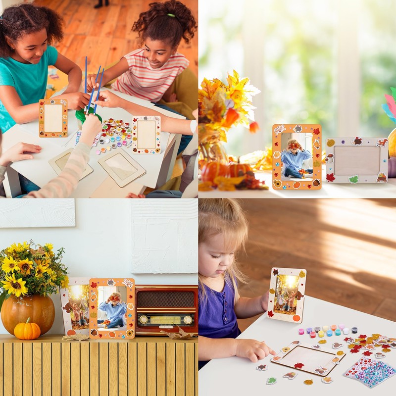 - Package Includes: this Thanksgiving picture frame painting craft kit includes 36 wooden photo frames, 250 Thanksgiving-themed foam stickers, 3 sheets of rhinestone stickers, 6 acrylic paint strips, 6 painting brushes, and 1 palette for crafting unique decorations, personal keepsakes, and sharing quality time in the comfort of your home