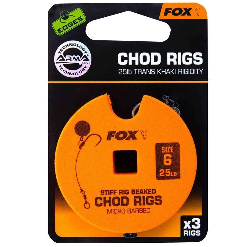 Fox edges micro barbed chod rigs for fishing, Stiff Chod Rig 25lb sz6 Standard