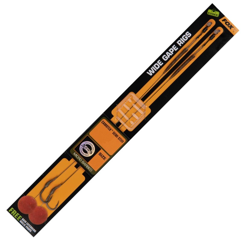 Fox Edges Wide Gape Rigs - 2 Leaders Carp Assembly - Fox leaders are a good choice for fishing with boilies and popups on carp. The wide gape rig is a classic, very effective and very proven rig, which is used very successfully by many carp anglers.