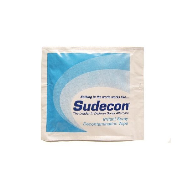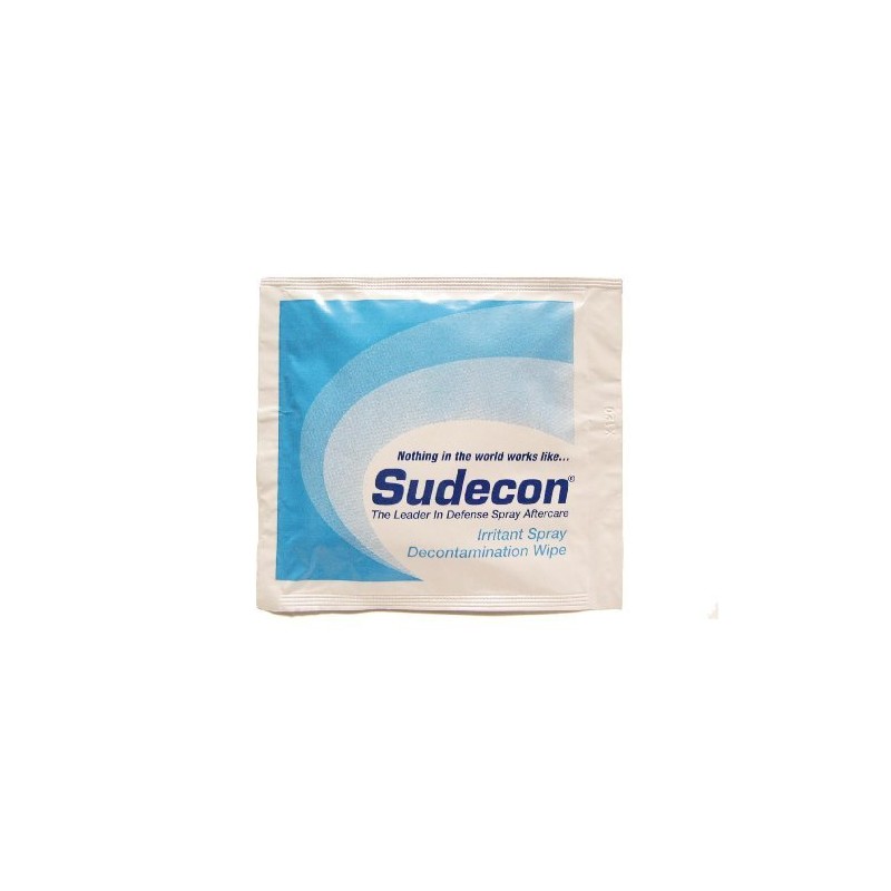 Sudecon is the first and only product of it's kind. Fox Lab's patented formula doesn't use alcohol/ethanol, and is so safe that it won't harm you even if ingested accidently. Nothing completes decontamination and restores vision faster, easier and more safely or reliably than Sudecon. Fox Labs FX-SUD-1 Sudecon Decontaminant Wipes: Instantly decontaminates by lifting removing chemical agents from the skin. Spontaneously Stops The Burn opening eyes and restoring vision usually in 7-15 minutes or less! Unmatched Effectiveness on all types of defense sprays including: OC, CS, CN, OC/CS. Easy To Use Just open towelette and wipe ALL affected areas. Sudecon is topical solution that is used on Closed Eyes, thus eliminating the need to force eyes open and spray them repeatedly like other products on the market. Can be applied prior to training exposure to reduce the effects of all types of defense sprays. Field proven by Military, Federal, State, local law enforcement, EMS and medical personnel as the superior decontaminate to all other alternatives. Easy to carry for quick access 3 1/2" 4" pouch opens to large 1/2" 11 1/2" inches and can be conviently carried on belt in glove pouch or in shirt pocket. Requires NO soap and water and contains all natural ingredients. Cleans up leather gear, handcuffs, steering wheels, etc. Sudecon reduces liability concerns in all areas. Environmentally safe Patented formula is comprised of baby-type shampoo, sugar and water. Non-Toxic, Non-Flammable, Non-Irritating.3 1/2 x H (Unopened) 7 1/2"W 11 1/2"H (Opened).