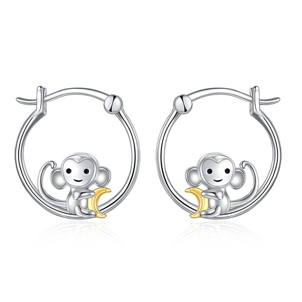 Monkey Earrings Sterling Silver Cute Monkey Hoop Earrings Monkey Jewelry Gifts for Women