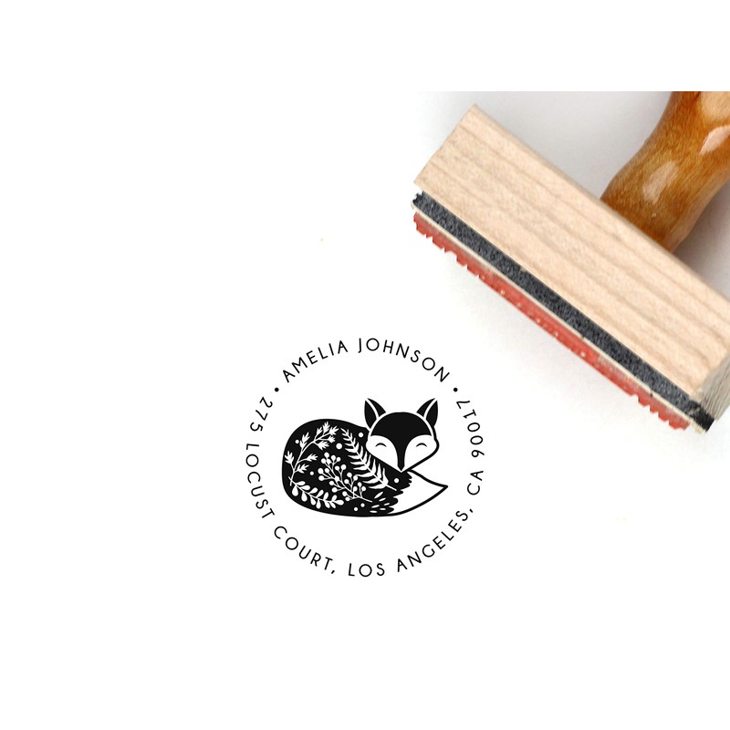 Fox Return Address Stamp Personalized, Botanical Address Stamp, Round Address Stamp Personalized, 1.5 x 1.5 inches