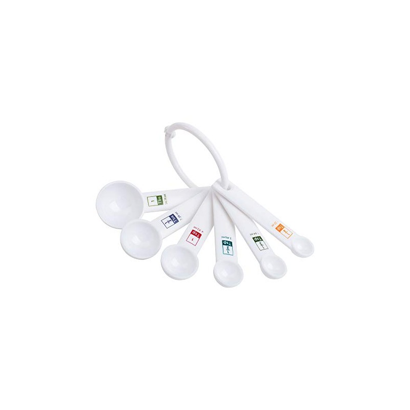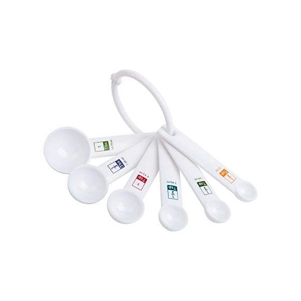 - STURDY CONSTRUCTION: This spoon set is made of durable white plastic Unlike other measuring sets that may chip or tarnish over time, this one is sure to keep up with you