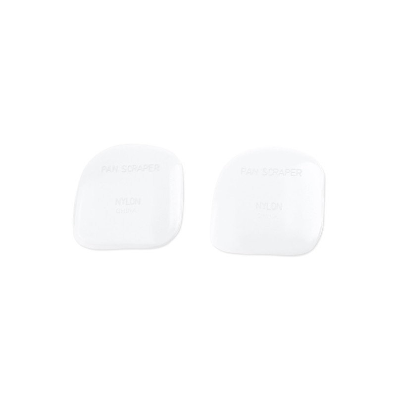 - Made of flexible, durable white nylon this set of 2 scrapers is perfect for cleaning pots, pans, pizza stones, and other stoneware and cookware that needs scraping