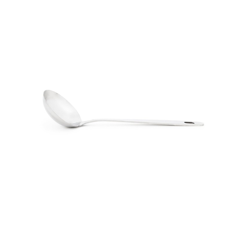 Serve in style. For those special occasions and everyday meals, a beautiful serving set is a must. Perfect for serving, this polished 12-inch Ladle is made of high quality 18/0 stainless steel. It features a one-piece construction, putting an end to food residue build-up in any crevices and minimizing wear and tear. Great to use when serving sauces, gravy, syrup, pasta, punch, and more. When the party's over, simply place the spoon in the dishwasher for easy clean-up. Utilize the hanging hole for simple storage and charming kitchen decor. Equip yourself with the right serving utensils for your next family meal.