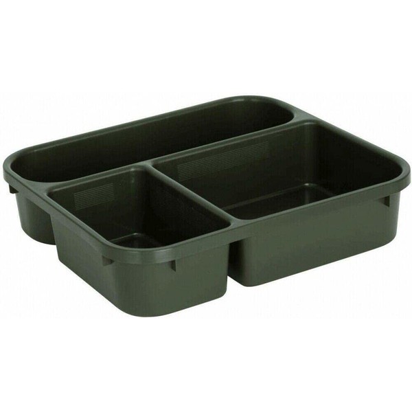 Separates and organises tackle items and bait.