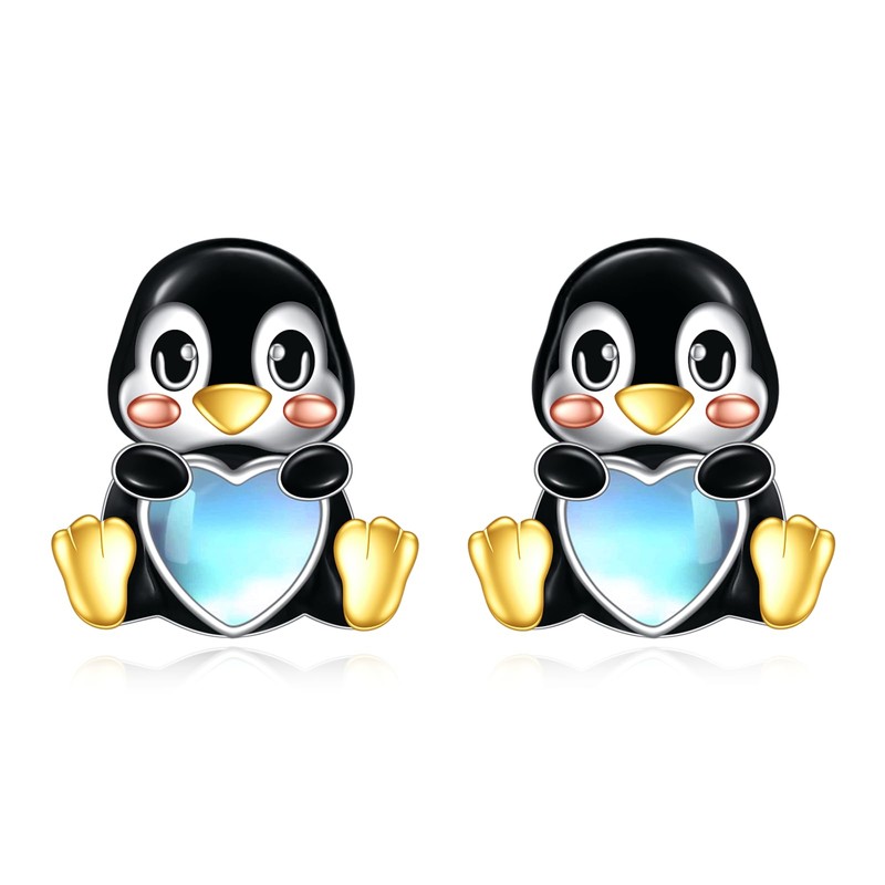 Fox Stud Earrings for Women Sterling Silver Moonstone Earrings Beautiful Animal Jewellery Gifts for Women (Penguin Earrings), Sterling Silver, Moonstone
