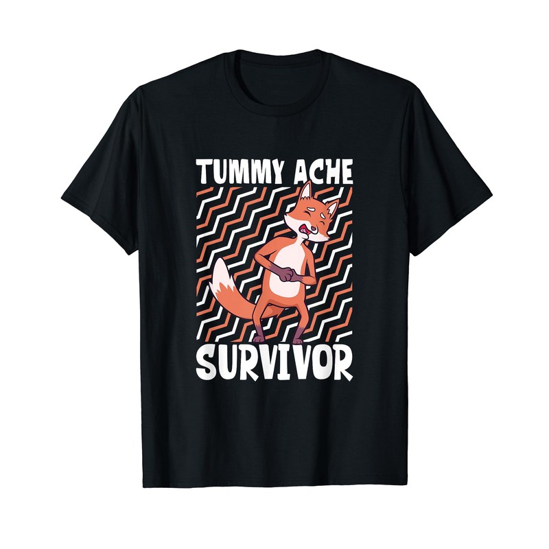 - Do you know a little wimp or a brave man who has survived a tummy ache? Give him this funny tummy ache design with a fox holding its belly.