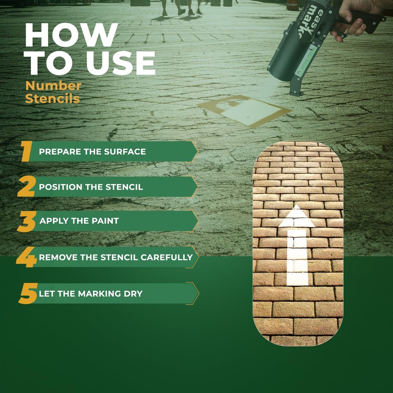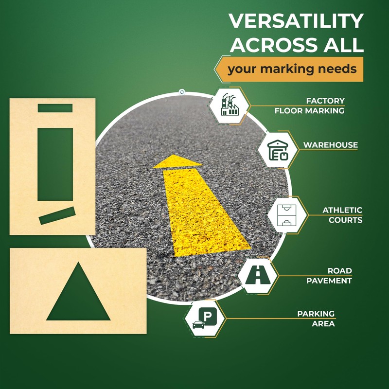 - MULTIPLE USES: Ideal for creating arrow signs, road signs, and outdoor stencils for concrete, our versatile stencil sets cater to a variety of applications. Whether it's for factory floors, athletic courts, or driveway stencils, our products meet all your marking needs.