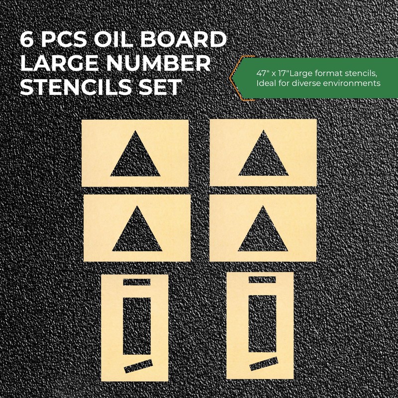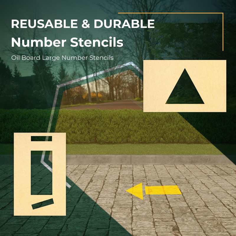 - REUSABLE: Built to last, our large floor stencil and concrete stencils can be used repeatedly without losing shape or quality. Thick Oil Board makes these stencils a long-lasting tool for marking pavements and creating floor signs.